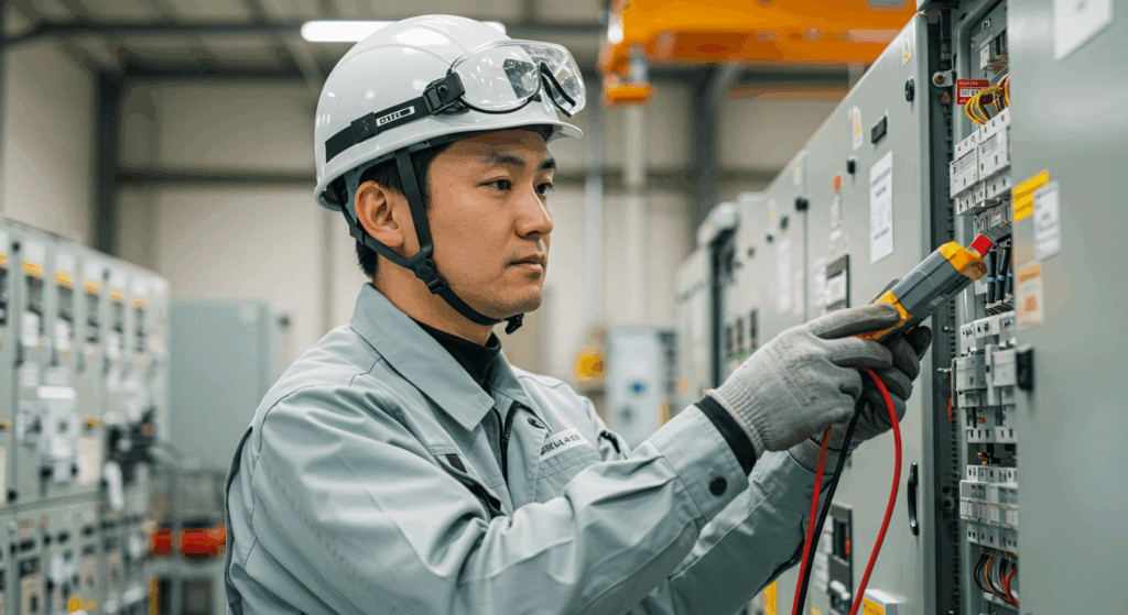 年次点検では、停電を伴う精密試験を実施します。これにより、通常運転時には発見できない、設備の奥深くに潜む隠れたリスクや異常を明確にすることができます。絶縁抵抗測定、保護継電器の動作試験、遮断器の動作確認など、設備の健全性を総合的に評価します。